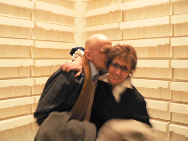 Then, this week, we went to a magazine party at MoMA and saw our man Tim Gunn, mentor on Project Runway. I lurve him, and after drinking four glasses of Champagne on an empty stomach, took this shot of him watching me take this shot.