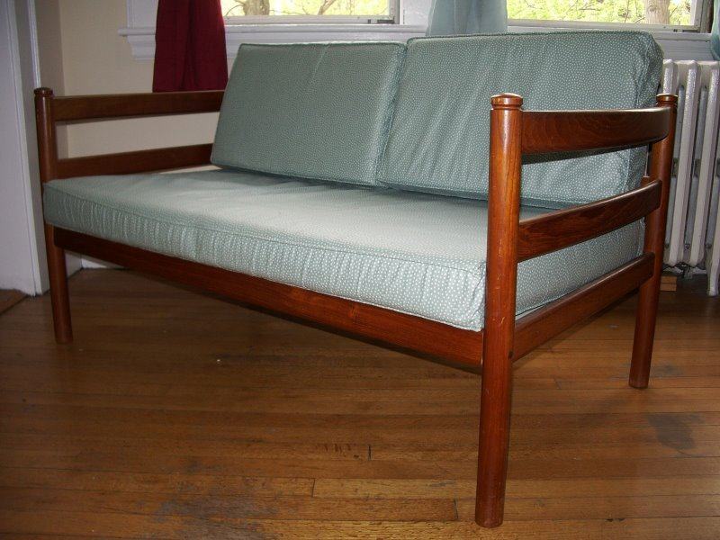 I’ll get back to the gift guide soon (still to come: best friend, coworker…) but in the meantime there are some things that need to be posted. If you have $2000 to spare, you could do worse than spend it on this Danish modern teak loveseat. Isn’t it beautiful? (Also, on craigslist, there is a Danish modern two-part sofa and chair for a mere $495. Oh, how I wish I needed a sofa and chair!)