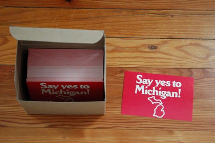 I grew up in Michigan, and it’s super super cool. Big lakes, small towns, cider mills, sand dunes, hilariously bad skiing. My birthday is coming up and at the top of my wish list are these Michigan postcards. They’re from a 1970’s ad campaign, and you get 100 for $5. Say yes!