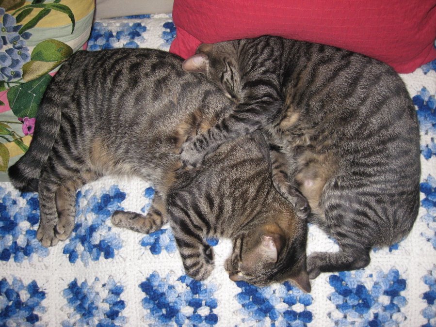 What in the world is cuter than cats spooning!????!!!! This pile of cuteness was passed out on my sofa last night at 1:56am.