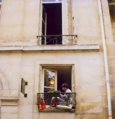 I miss Paris. And wish that I could sit in the window like that guy, with a steaming cup of sweet tea and a good book, best on a cool autumn morn.