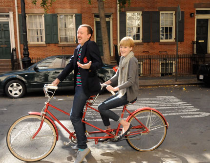 This weekend, I met an adorable girl on my street who has a tandem bike. She rides it around the city with her boyfriend. (Brave!) Here are their cutie photos and read their story on Smitten.