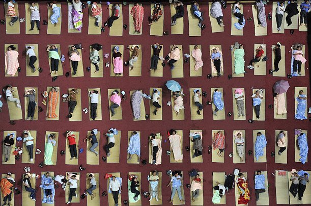 Visiting parents of students at a Chinese university allowed to sleep overnight in the gym.