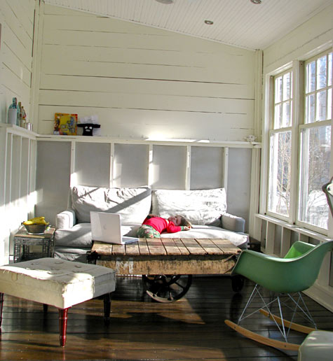 Loving this relaxed room, complete with afternoon sunlight, an Eames rocker, hardwood floors and a baby.
