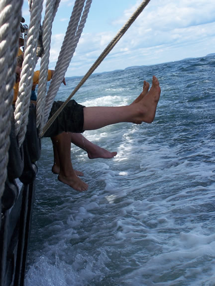 You tell ghost stories and eat homecooked meals and keep an eye out for birds, seals and whales. “It’s so completely different from anything resembling ‘real life,'” says Lisa, whose brother runs the boat. “Being in a big schooner, kerosene lamps, games, rowing, swimming if you’re brave, lots of wool, cute boys, excellent food, and pretty, pretty Maine.”