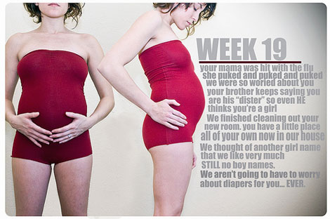 Photographer Ryan Marshall takes weekly photos of his pregnant wife’s growing belly. Next to each photo, he writes sweet notes to their unborn child. Oh so sweet. See more on Smitten.
