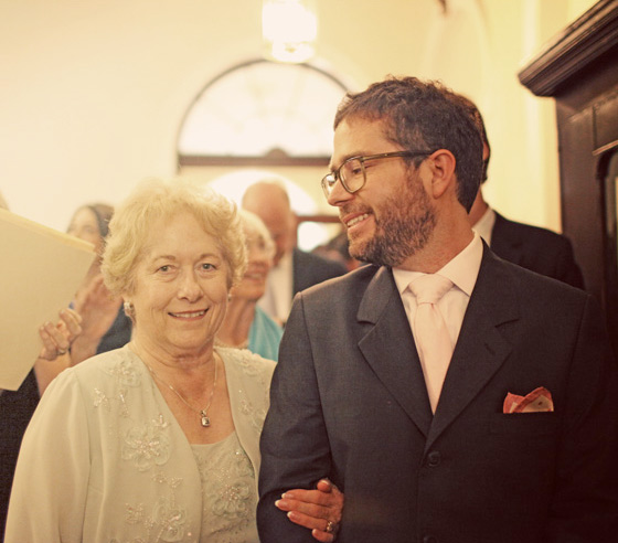Now, for the best part: the ceremony! Here, Alex and his lovely mother Joyce are getting ready to walk down the aisle. Alex was all nerves, and told me afterwards that he didn’t remember a thing about walking down the aisle. Not a thing! Alex was filled with both jitters and excitement. He kept saying, “It’s a potent brew, it’s a potent brew.”