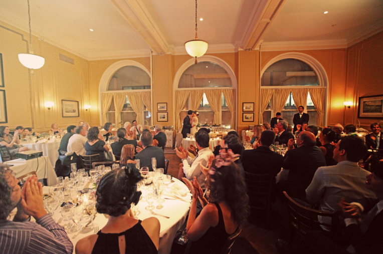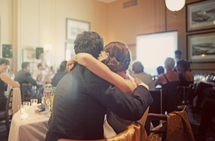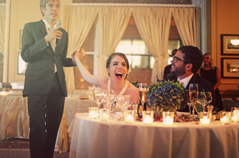During dinner, our friends and siblings gave toasts. Alex’s friend Brad talked about their early days in New York (where they shared a miniature apartment with a stalker across the hall), Alex’s sister Lesley wrote a beautiful poem, my sister Lucy spoke about love and imagination, and Alex’s brother Scott gave a funny toast full of California slang (including the line, “Dude, you totally scored.”) But the big twist of the evening came when my little brother Nick gave his entire toast in a pitch-perfect New Zealand accent. No joke! The crowd was on fire!