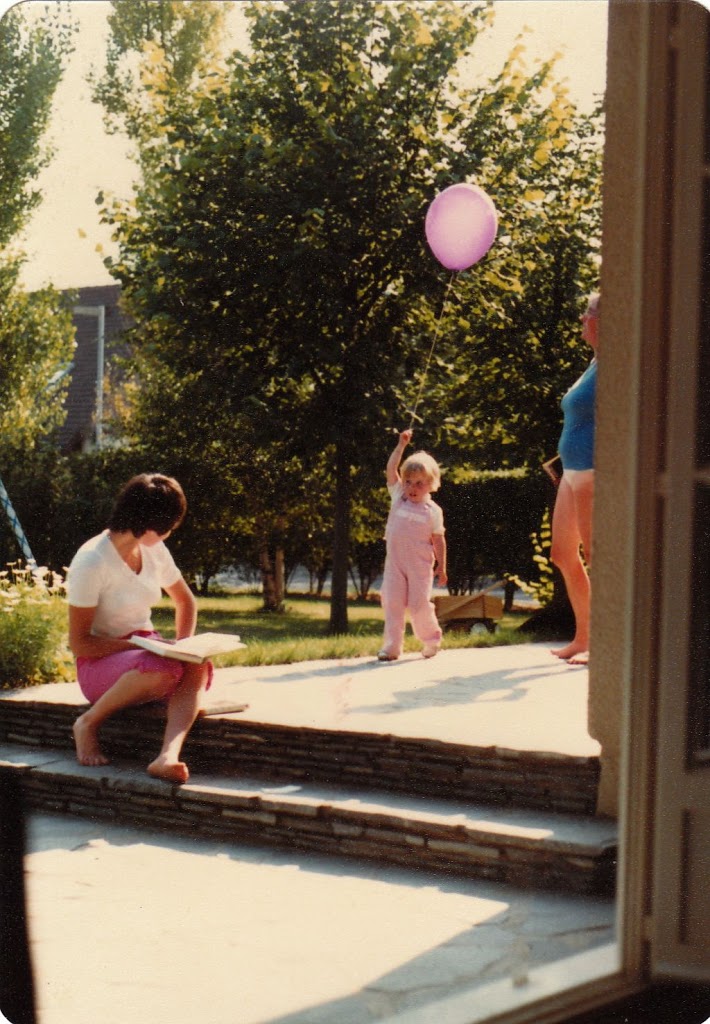 Last night, I couldn’t sleep, so I was going through old family photos. In the top photo, above, my twin sister Lucy and I are kicking it in France, where we lived when we were really little. (Can you tell who’s who?) In the middle one, my mom, Lucy and I are on the ship that brought us to America. (That sounds so old-fashioned!) And the bottom one is me with a pink balloon (twenty-seven years before our engagement photos). xo
