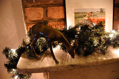 The dark winter days can be a bummer, but one of my favorite parts of the holidays is decorating our little fireplace. This weekend, we put up a garland, along with a grazing brass deer. Even though the fireplace doesn’t actually work, the room already feels much cozier.