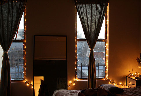Our girl Kate posted a photo of her bedroom; isn’t it pretty? I wouldn’t have thought of stringing fairy lights around a window frame, but it looks cozy and magical.