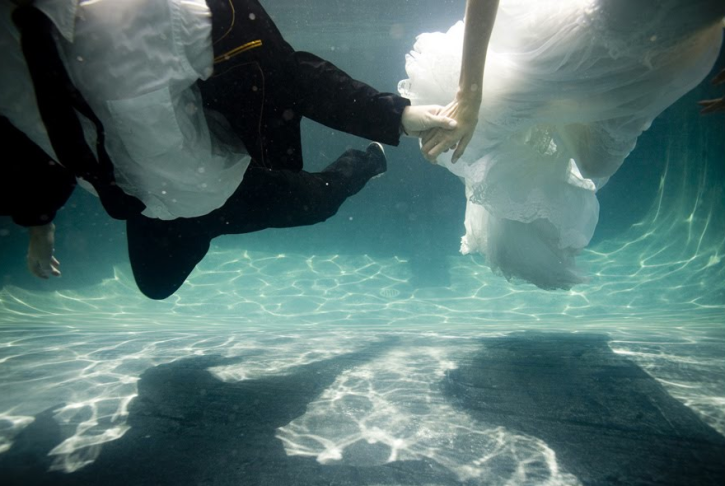 I’ve seen so many underwater wedding photos, but I thought the one where the bride and the groom are holding their hands is really interesting. Great job!