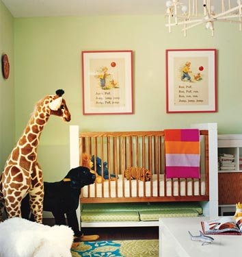 These days, nurseries are looking so amazing! I’ve been flagging inspirational images, such as the nursery of J.Crew creative director Jenna Lyon’s son, above. Aren’t the yellow stripes amazing, and who would think to paint a nursery wall black?