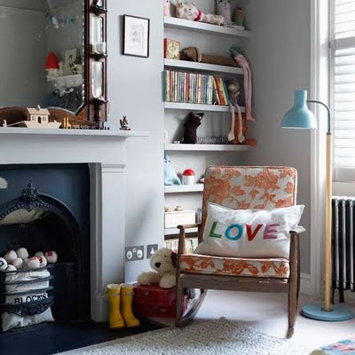 The shades of blue in this room are lovely and calming, and the Tord Boontje hanging lamp looks magical. What nursery colors or special touches do you like? I’d love to hear… xoxo