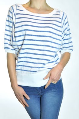 When we were little, my mom used to wear beautiful, baggy shirts like this one. (See exhibits A and B:) She would roll up the sleeves, wear her hair down, and look so relaxed and chic. When I saw this striped shirt, it reminded me of her, and I’d love to have it as a new mom.