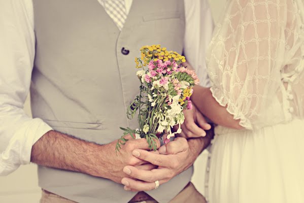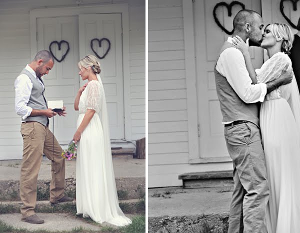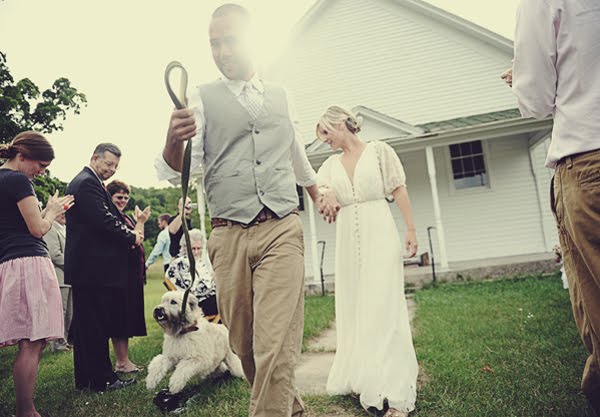 I’m really drawn to simple weddings these days, so I’m loving Bryce and Stephanie‘s afternoon wedding in Michigan. Their dog Morty was the enthusiastic best man, and Stephanie carried a bunch of wildflowers. She found her beautiful dress at Loehmann’s (Loehmann’s!) for $55. And isn’t it gorgeous how she tucked her veil under her bun? I don’t think I’ve ever seen that before! So graceful and old-fashioned. xo