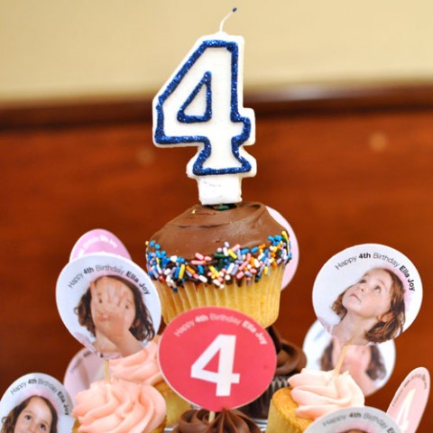 Tina (aka Swissmiss) has the sweetest tradition of making her daughter birthday cupcakes, decorated with photos of her changing face. How adorable have the past four years been? Aww, happy birthday, Ella Joy! xo