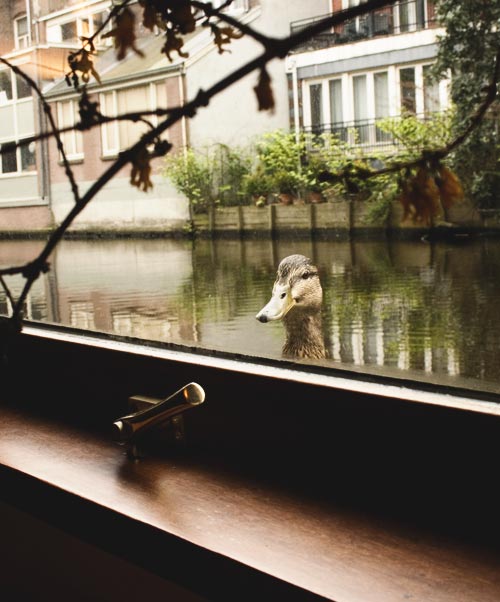 The lovely Pia lives on a houseboat in Amsterdam, and this little lady just paddled up to her desk! How cute is that?