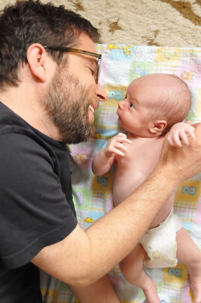 Not to overdo it on family photos, but I adore these shots of my two men. Toby just stares at Alex. He is totally fascinated by him! It is the cutest thing ever. (In the last shot, Toby had just made some ominous noises, if you know what I mean:)