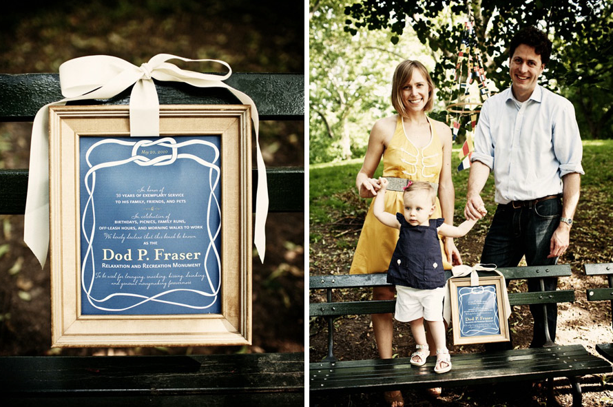 For her husband’s birthday, Elizabeth surprised him with a Central Park picnic. She decorated a bench in his honor, made a seven-layer chocolate cake from scratch, and brought along their sweet daughter and the family dog. Then she had an amazing photographer take family portraits, so they’d always remember the occasion. (Good thing her husband wore a cute outfit to work that day!) Isn’t that an incredible and creative present?