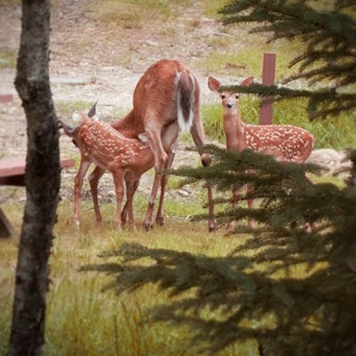 Speaking of camping, when Marina and her family were camping in Maine, they peeked out of their tents and saw a nursing baby deer! How sweet.