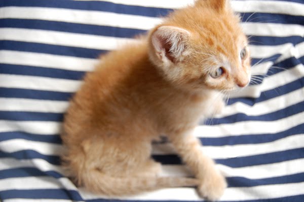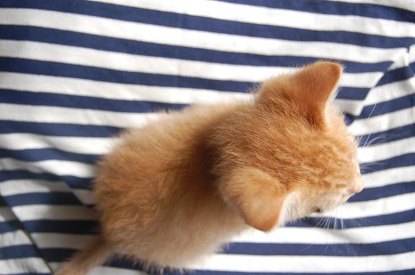 Eep. Marmalade cats are too cute! I remember when my old cat was a tiny little 6 wk old baby, and she’d curl into my shoe to sleep :)