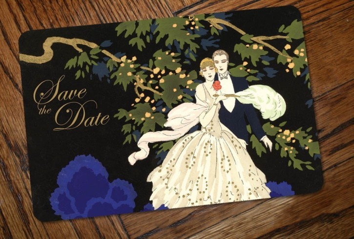 While Toby is napping, I wanted to share these gorgeous (and not-to-expensive) Art Deco wedding invitations. This etsy shop has tons!