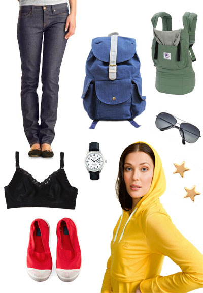 7. With a baby in your arms (or in the Ergo), it’s hard to bend over to tie your shoes. So slip-on shoes come in handy! French Bensimon shoes are cute and comfy, and Minnetonka moccasins and striped espadrilles would work well, too.