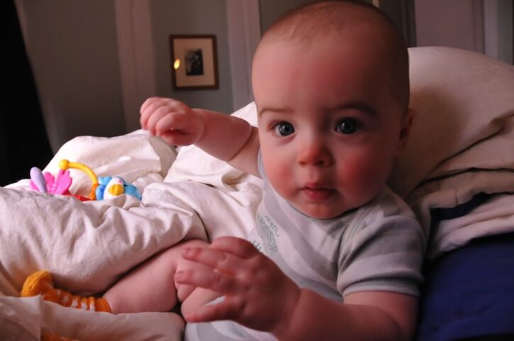 Toby had a bit of a tummy ache on Saturday, so we spent the morning lounging around. It was really fun to lie around doing nothing except playing with his bird toy and giving raspberries.