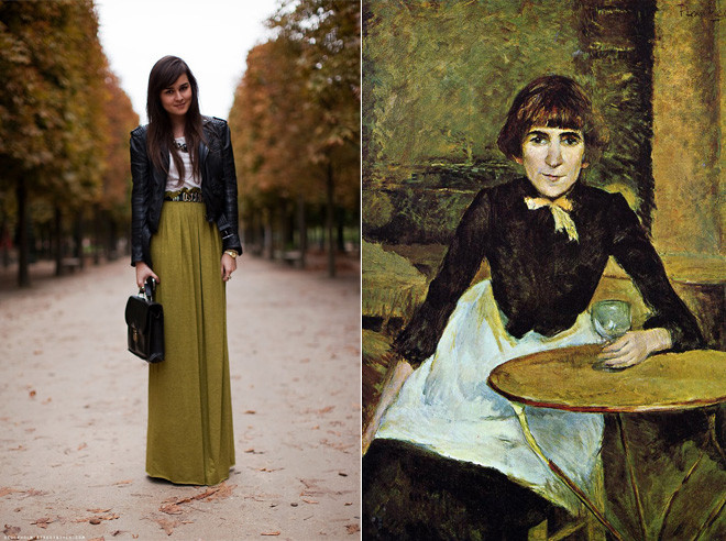 My jaw dropped when I stumbled across this color comparison series, where Miss Moss matches street style photographs with old-school artwork. Bravo!