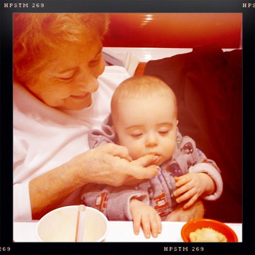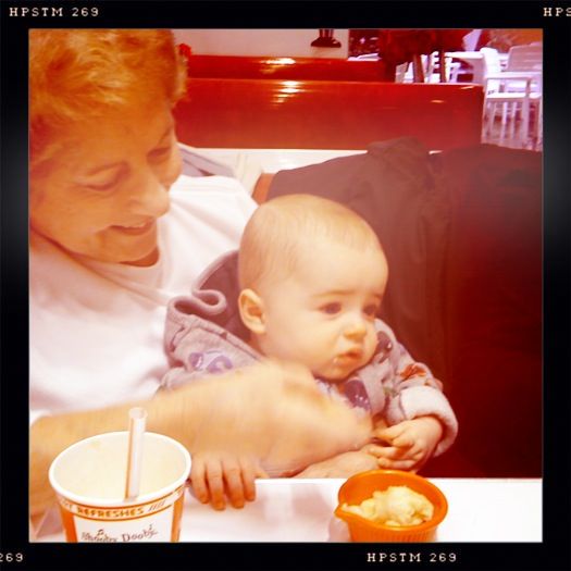 Another morning, we went to Ruby’s Diner, and Toby tried mashed banana for the first time.