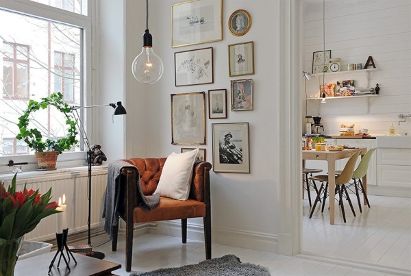 Oh my goodness, I’m in love with this beautiful room. Everything from the vintage frames to the topiary to the flickering candles are just gorgeous, don’t you think? But most of all, I adore that hanging bulb. Any idea where you might find one?