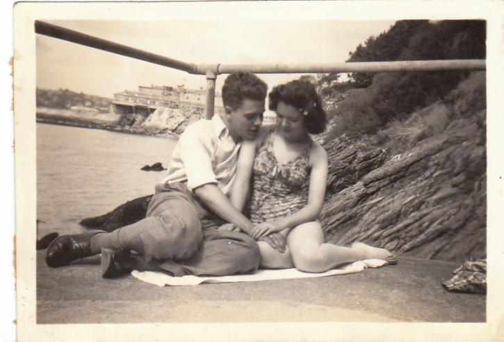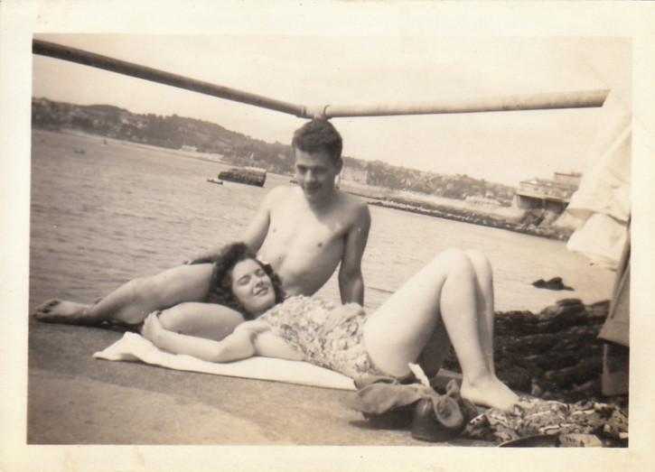 My mom sent over these old photos of my grandparents, who met on Valentine’s Day back in 1945. My grandfather was an American pilot stationed in England, and my grandmother was an English girl living with her parents. They were set up on a blind date (to a Valentine’s Day dance), hit it off, and got married in August of that same year. I love these photos of them right before they got married and on their honeymoon.