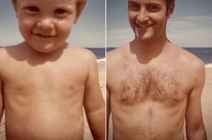 For her Back to the Future project, photographer Irina Werning, where she invites people to reenact their childhood photos. Awesome.