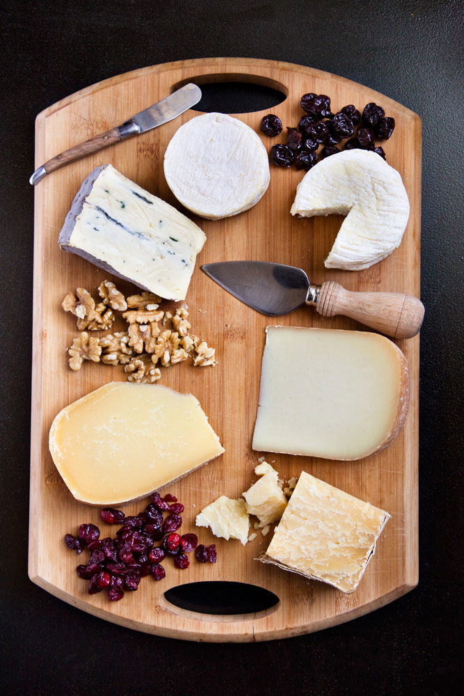 * Choose a fun variety of cheeses: different textures, countries, and all three milk types (goat, sheep, cow).