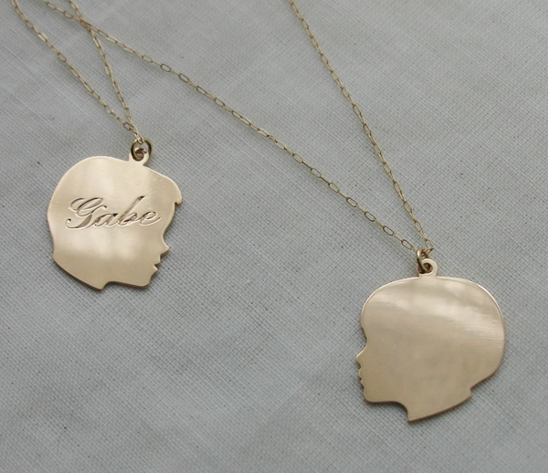 Today’s giveaway is from Meg Moorhouse of Love & Victory, a beautiful jewelry and design studio based in Brooklyn. She’s offering a custom sterling silver silhouette necklace. You send her a photo of your loved one, and she’ll create a one-of-a-kind charm. Aren’t they gorgeous? (And they’d be perfect for Mother’s Day!)