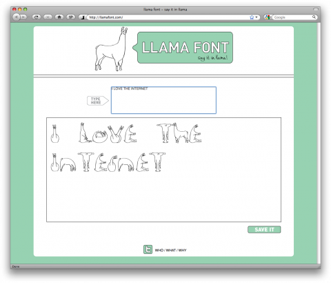 And I haven’t posted about typography in a while, but how genius is this llama font? So random and hilarious. He’s so flexible! :)