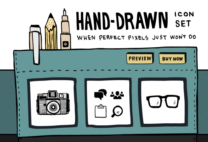 If you’re designing a website or invoice or business card, how awesome are these hand-drawn icons? You can buy the set of 300+ icons for $30. I love that they include glasses, skateboards and toast.