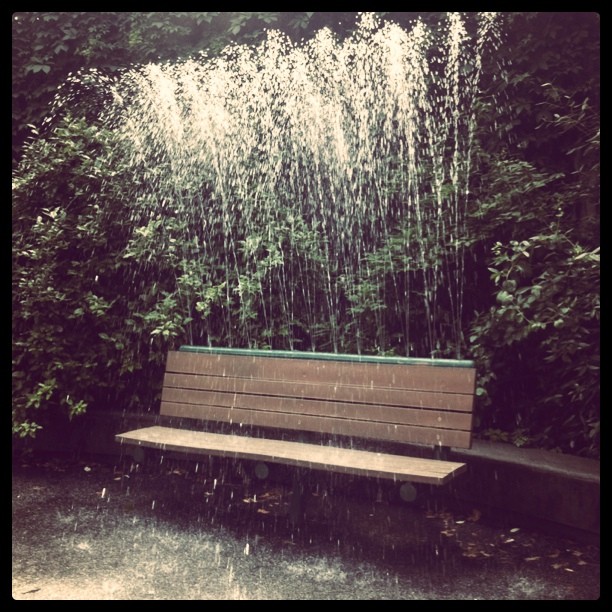 I live in Siwa Oasis, Egypt and it is 40 degrees day and 28 at night (minimun) here now. We have fresh water springs here to swim in, but they are long walk away on a hot day. Shop owners hose the sand in front of their stores daily to keep the sand dust down, and I have been watching them and dreaming of childhood sprinklers in Australia. But this bench is what I really want. All the houses here have benches in front where the men sit in the evenings to chat, as it is cooler than being indoors. But this would beat any bench in town. I feel cooler just looking at it.