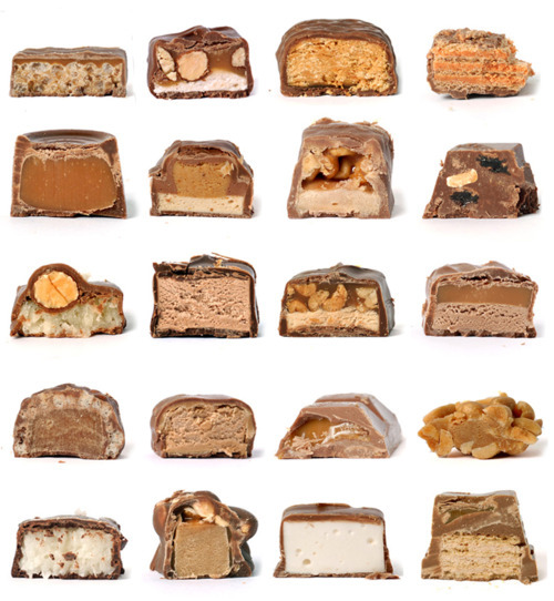 How many of these candy bars can you identify? (I can see Snickers and Payday, that’s about it!) They look delicious.