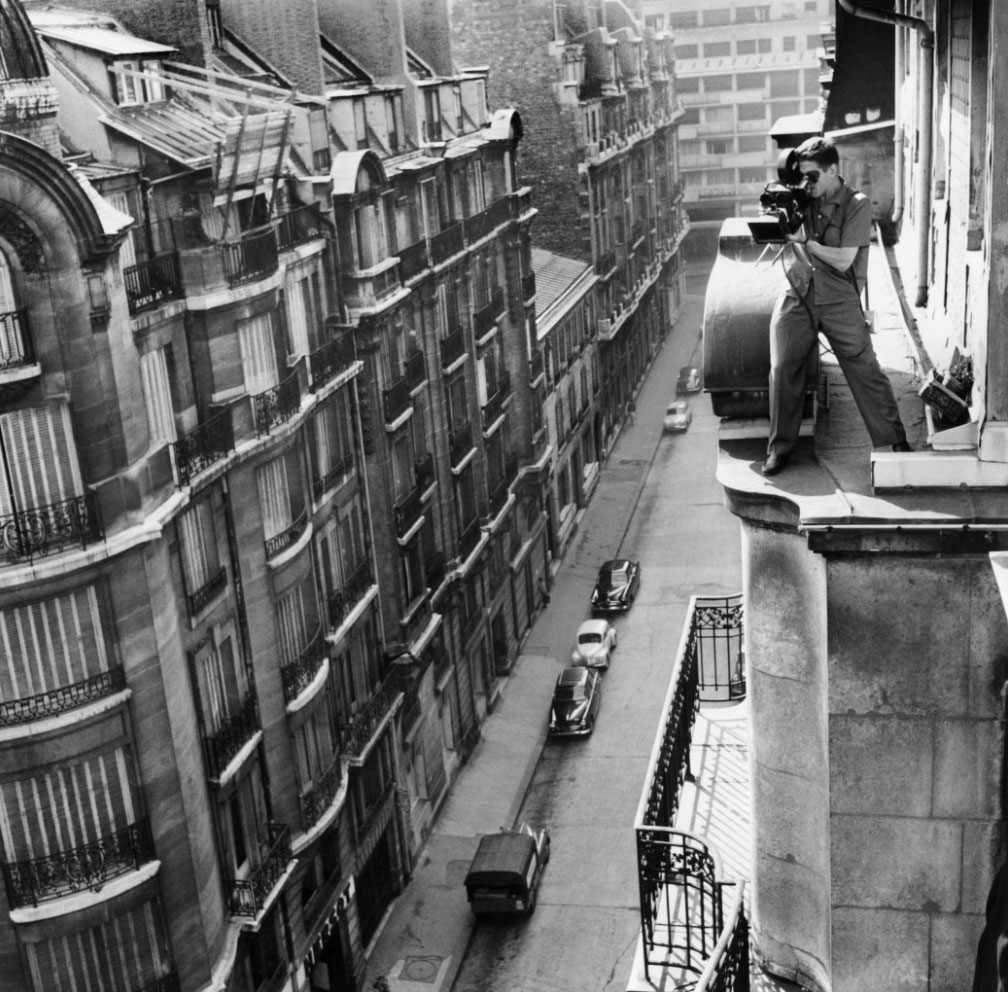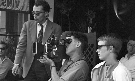 (The third photo above shows the cinematographer Raoul Coutard shooting a scene from a rooftop!)