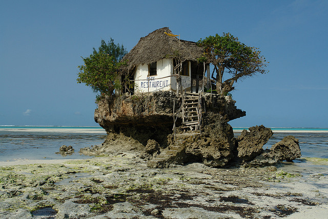Wow, how’s this for a travel fantasy: The Rock Restaurant is an amazing seafood shack perched on a rock in the Indian Ocean. Depending on the tide, you either walk, swim or row a boat to it!