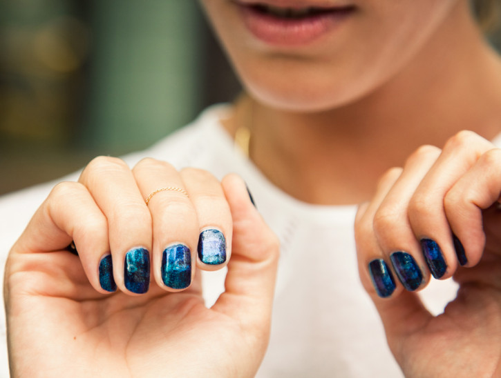 4. Layer a lot, since, instead of your nails looking flat, you want to get that 3-dimensional look of a far-away galaxy, like you’re gazing up at the night sky.