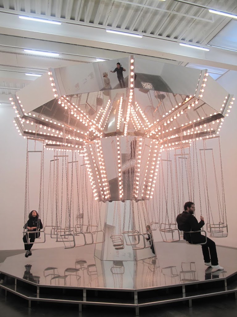 Don’t you love interactive museum exhibits? This morning, Alex and I swung by the New Museum’s amazing new exhibit, Carston Höller: Experience, which has transformed the museum into a grown-up playground. First, we rode a mirrored carousel, where you sit on swings and rotate slowly, while listening to actual birds singing. It was incredibly relaxing, and you felt like you were five years old.