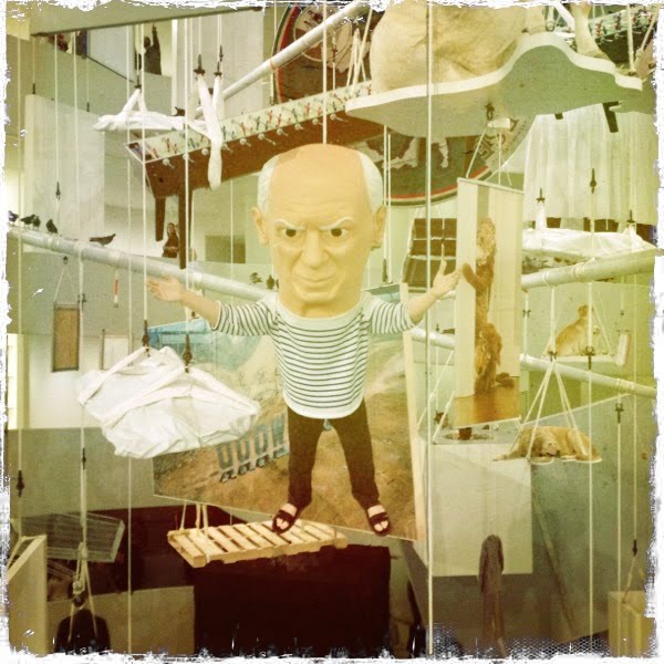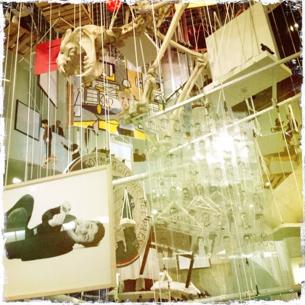 The exhibit was by Maurizio Cattelan, a 51-year-old Italian artist, who was retiring from the job of making art. Instead of displaying his sculptures on the floors of the museum, he challenged the curators to hang all 128 works from the ceiling. So they did! What a feat of engineering. The end result was spectacular, and it was fascinating to walk around and see the intricate, wild pieces from all angles.