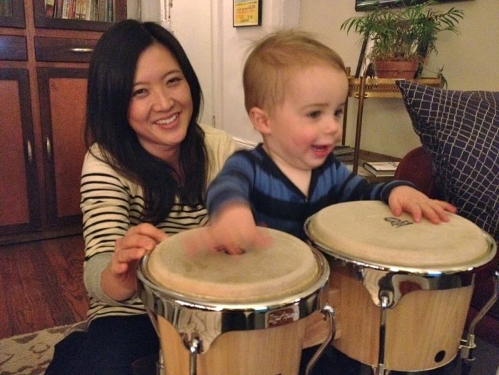 My 9 month old loves playing the drums too! But more than anything he is fascinated when we play guitar. I would love to get him one but they all seem too old. What baby guitar do you have for Toby?