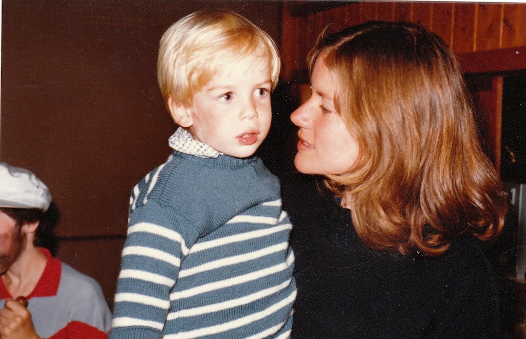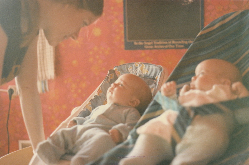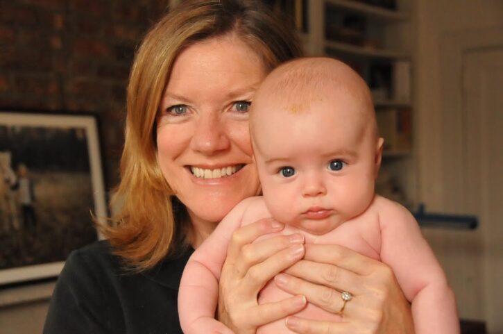 With us twin babies in Paris (“We had lots of wild wallpaper, even on the ceilings!” she remembers)…