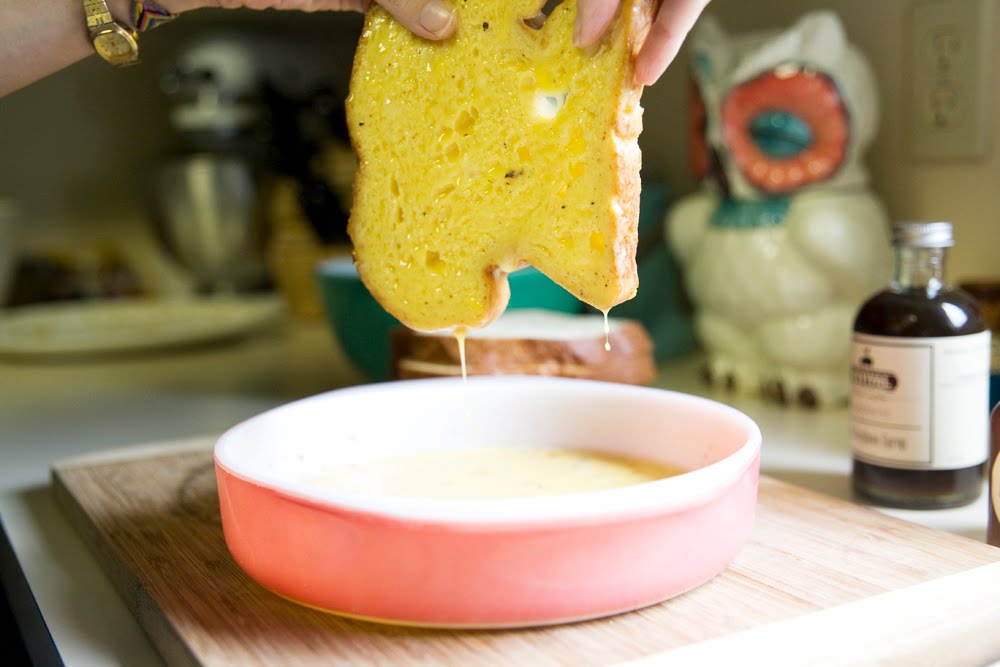Note: One of the most important things in this recipe is to get a good thick loaf of bread. I like to use brioche or challah.
