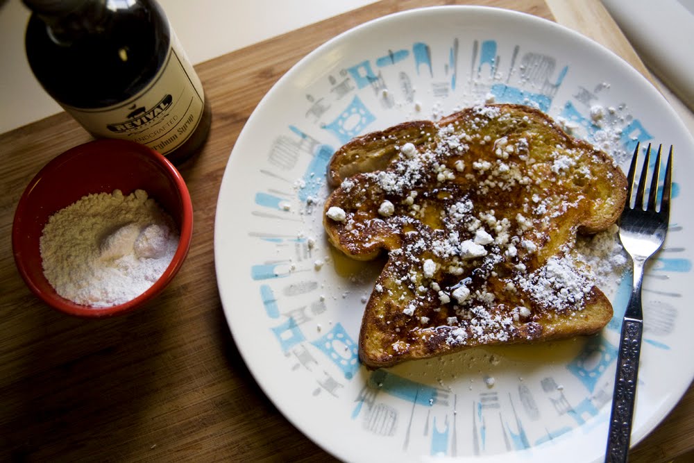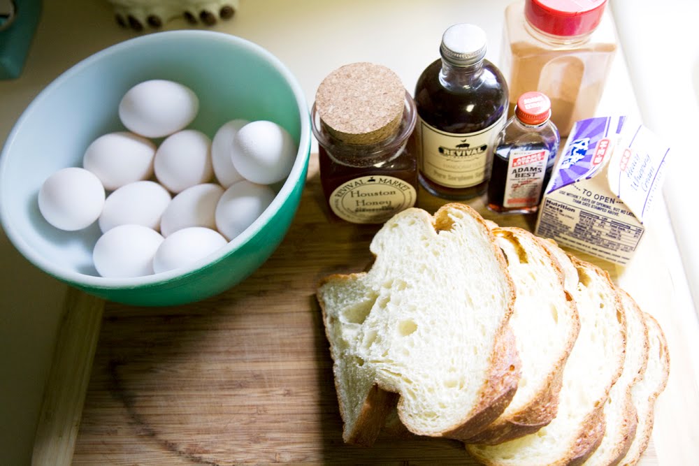 Who’s hungry?! French toast is one of those meals that always hits the spot–whether you’re having it for Sunday breakfast, or whipping some up for a midnight snack. Eggy, thick, buttery, syrupy… Happily for us, Miss James from Bleubird Vintage is sharing her go-to recipe, which not only satisfies two adults, but also her three hungry kiddos! Here goes…