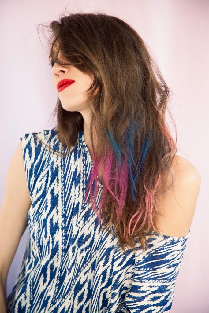 3. Switch colors if you want. Just go crazy. Experiment. This type of hair is meant to be fun and carefree! (For my hair, I used a combo of four colors: magenta, peach, royal blue, and turquoise.)